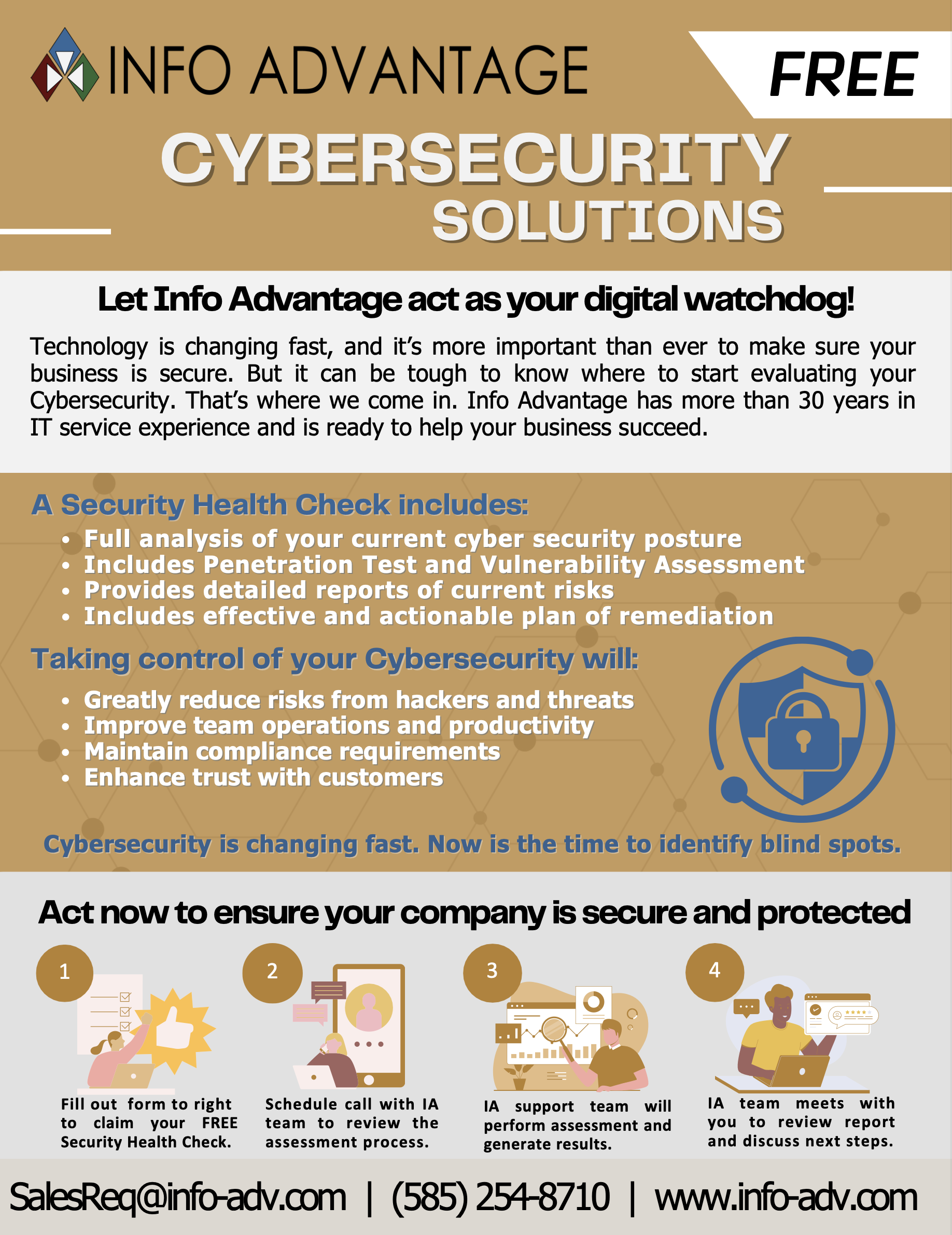 As cyber threats evolve, it’s crucial to stay one step ahead. Our Free Security Health Check will provide a comprehensive assessment of your systems, identifying vulnerabilities and offering actionable insights to enhance your cyber resilience. Don’t wait for a breach to happen—empower your business with the knowledge to safeguard your data, operations, and reputation.